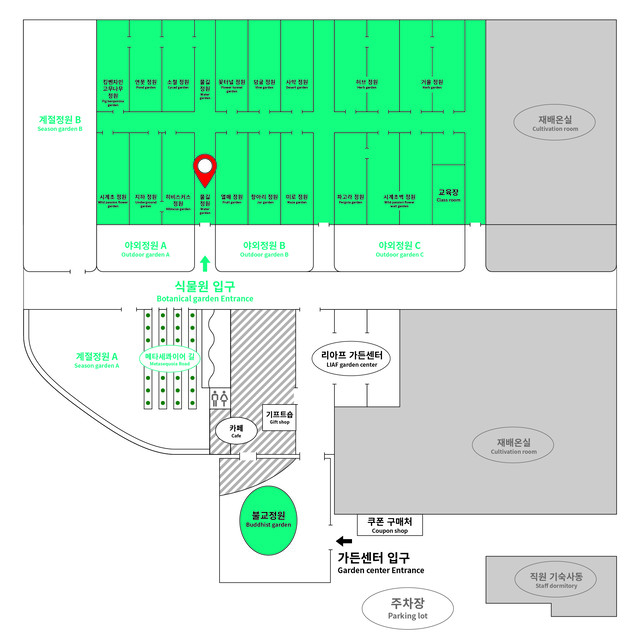 헬리코니아는 물길 정원에서 보실 수 있습니다.