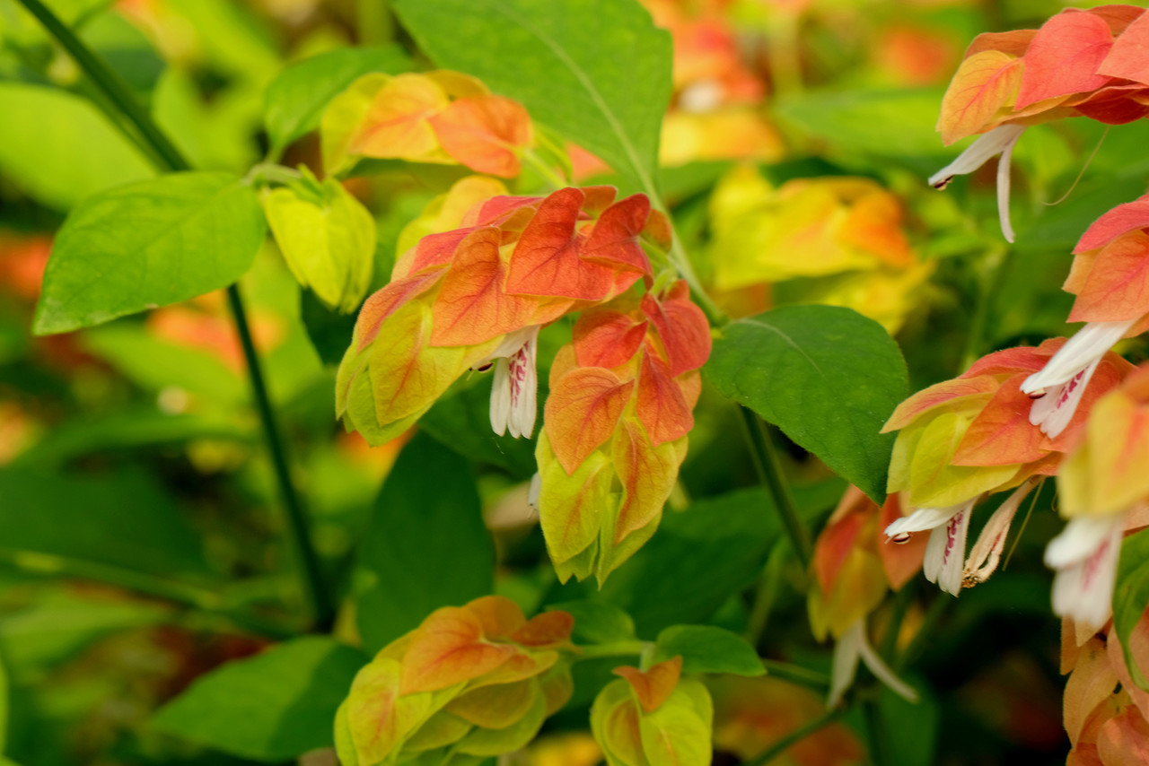 새우초라는 이름은 붉은 색과 포엽의 모양이 새우와 비슷하다는데서 유래되었습니다. 꽃처럼 보이는 붉은 부분은 포엽으로 꽃은 그 사이에서 피는 흰색의 긴 막대모양입니다.